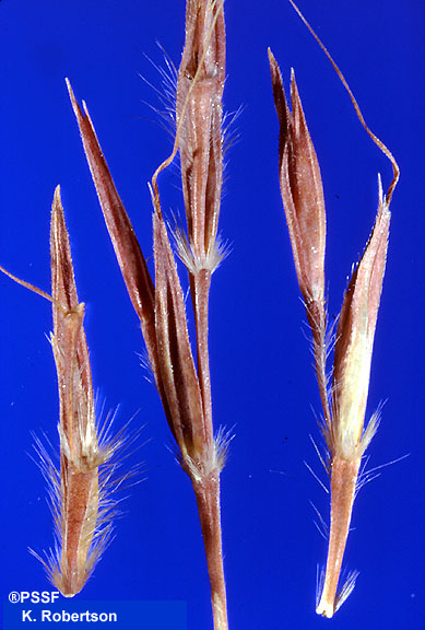 Stems: Tiller base flattened and reddish; coarse hairs