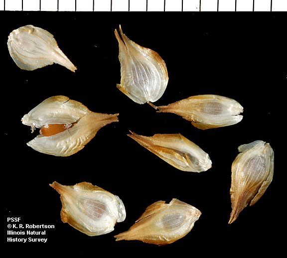 Fruit Type: Perigynium (sac-like structure enclosing seeds) with notched beak