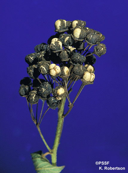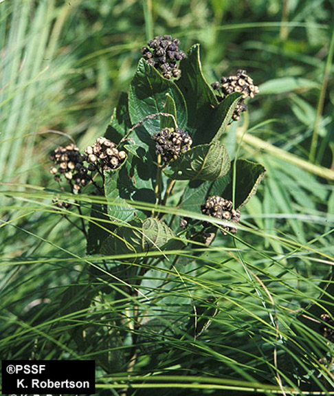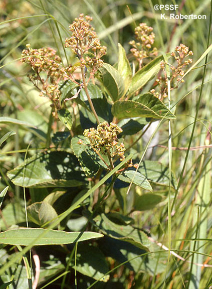 Leaves: Simple, oval with pointed tip, petiole, serrated margin, prominent veins