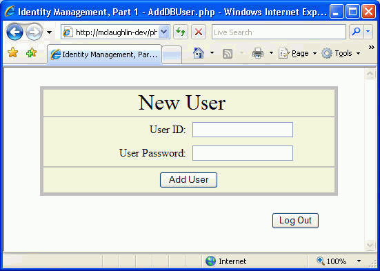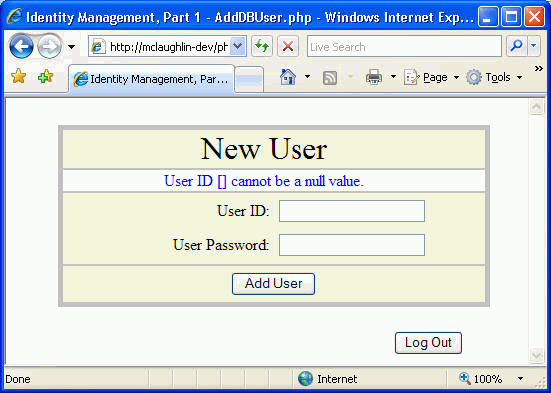 the AddDbUser.php Web page because clicking the