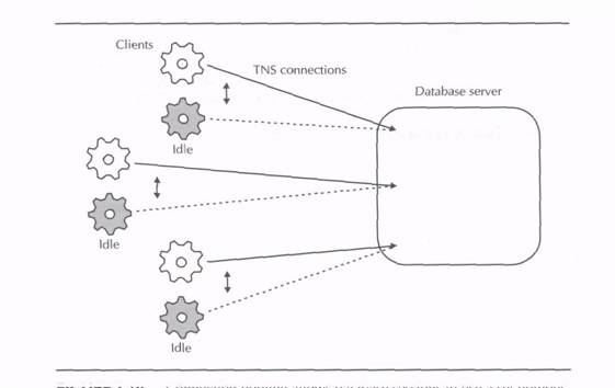 Typical database connections support applications that sit idle a large percentage of the time. For example, when using a typical order-entry application, the salesperson does not actually send or receive any database information across the TNS connection while filling out a screen form with order information.